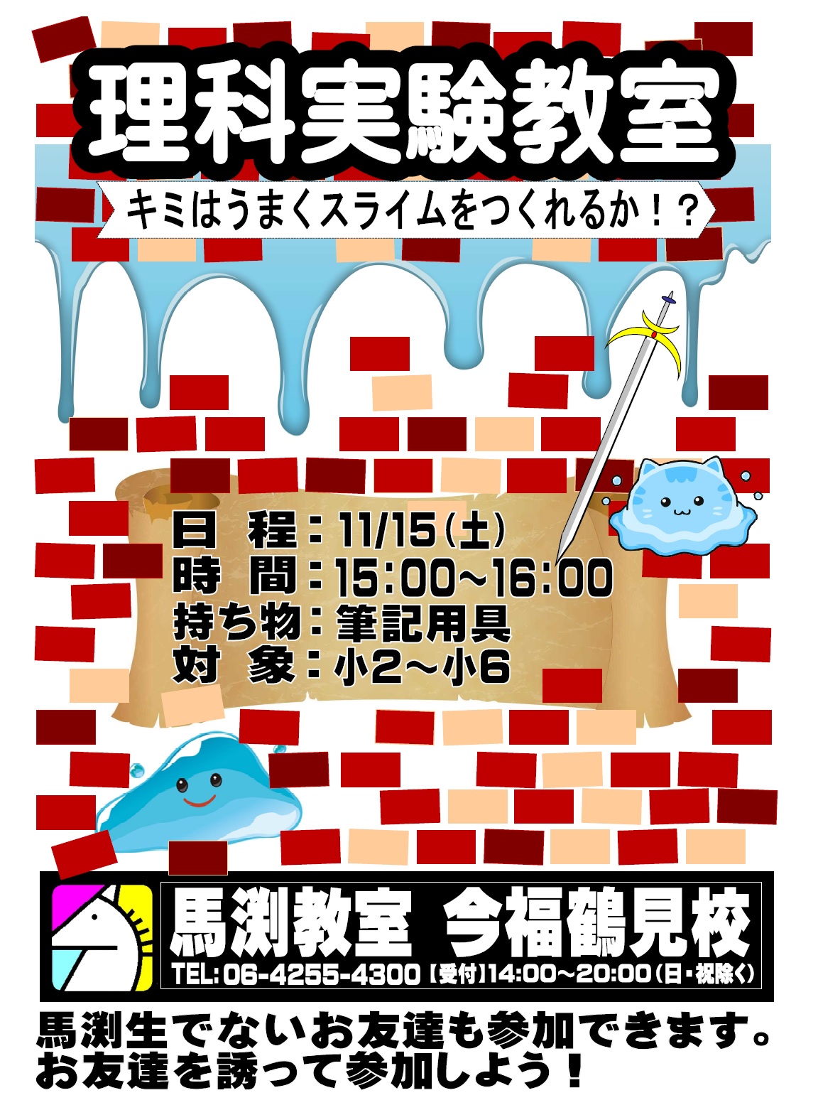 日時 | ●11/2(日) 中1 13:40~17:30 中2~中3 9:00~12:50 ●11/23(日) 小4~小6 13:40~15:10 |