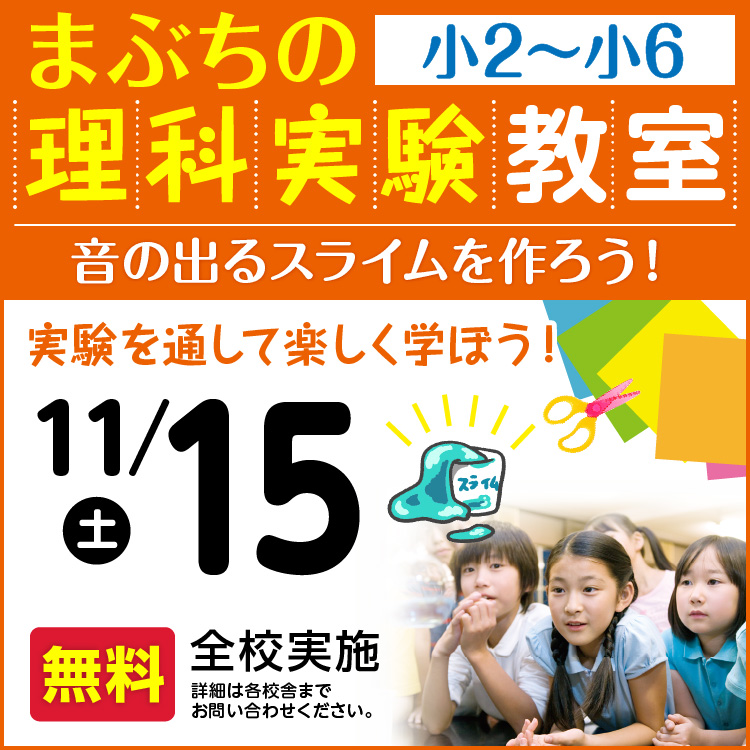 | 開講日時 | 【小学4年生】 水曜日 18:05~18:50(45分) 【小学5年生】 水曜日 17:15~18:00(45分) 【小学6年生】 月曜日 17:15~18:45(90分) |