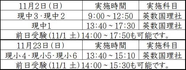 - 「モジュール体験授業」は入室説明会と同時実施です。
