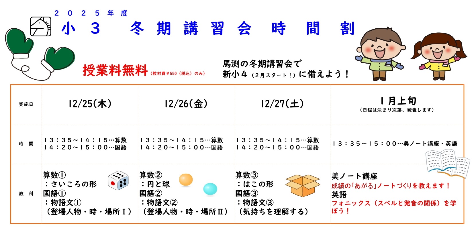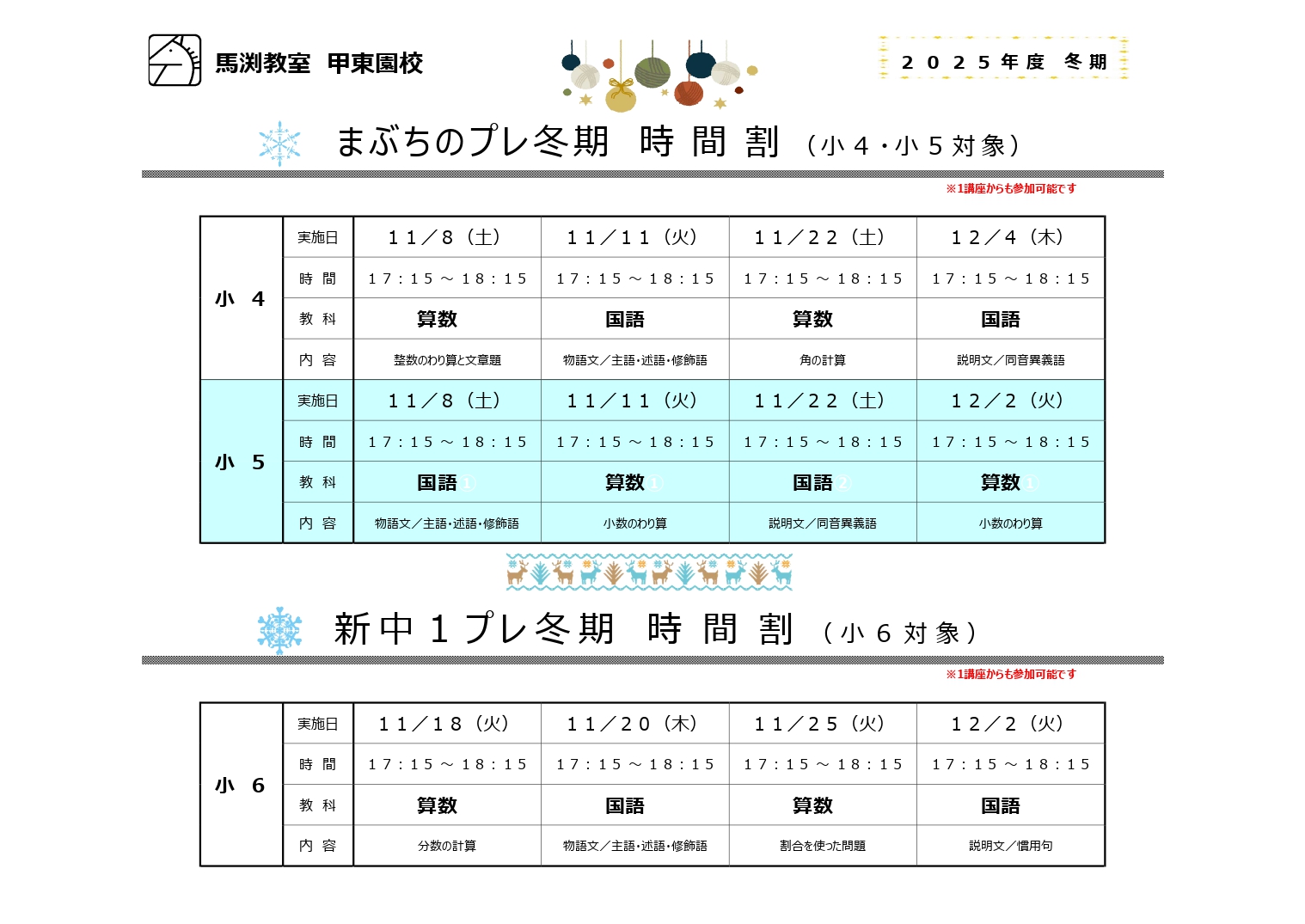 ▲冬期時間割が出来ました。時間割は校舎までLINEでお問合せ下さい!詳細はこちら▲
