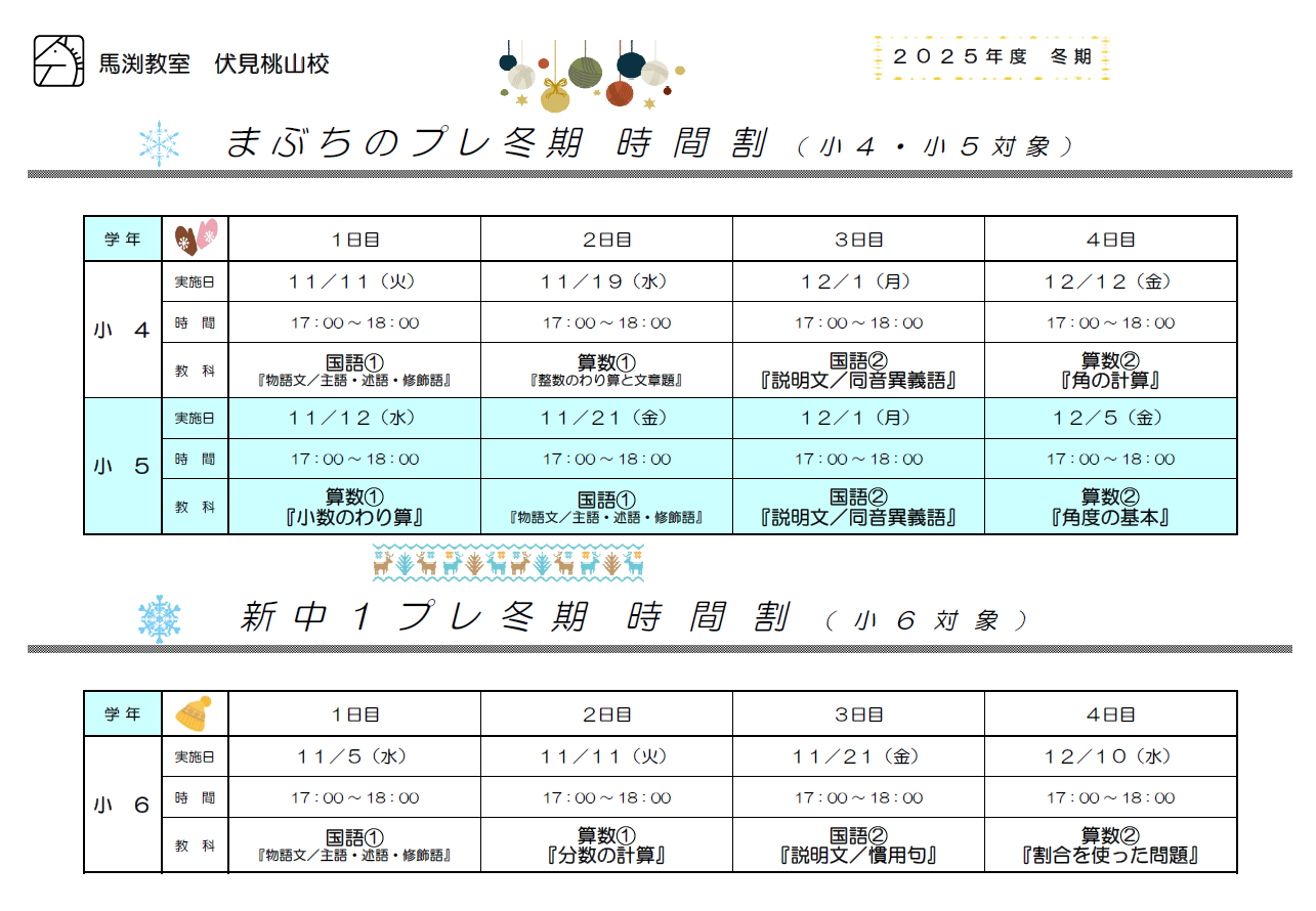 ぜひともお友達もお誘い合わせのうえ、馬渕教室の冬期講習会にご参加ください!
