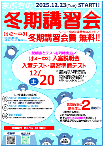 ⛄まぶちの冬期講習募集開始!小2~中2は講習のみでも無料!⛄