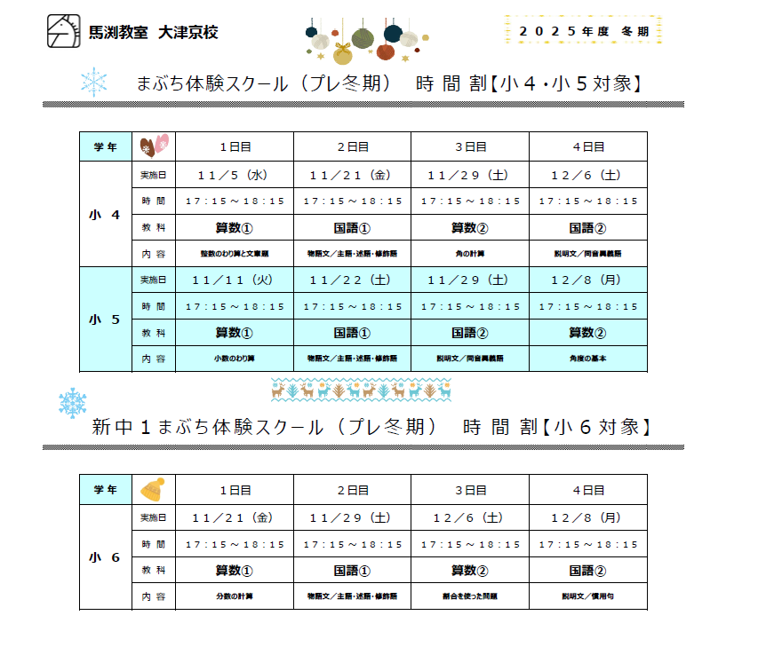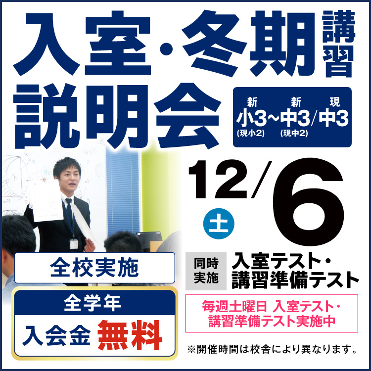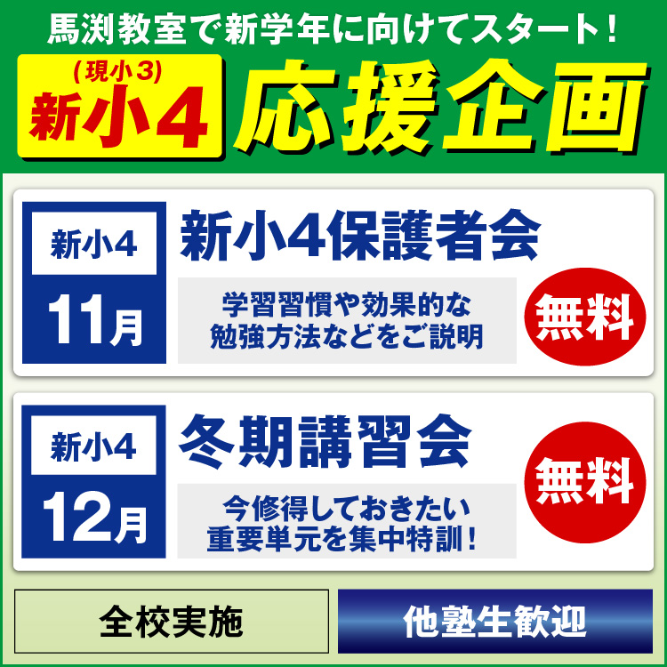 ぜひともお友達もお誘い合わせのうえ、馬渕教室の冬期講習会にご参加ください!