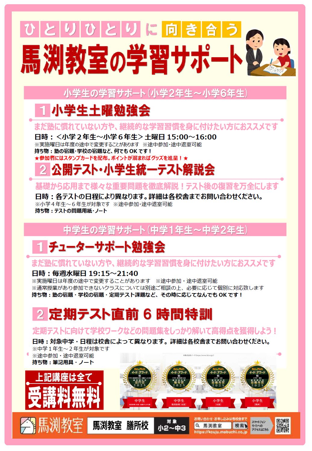 しかも、馬渕教室に在籍している生徒ならすべて無料で受講できます!