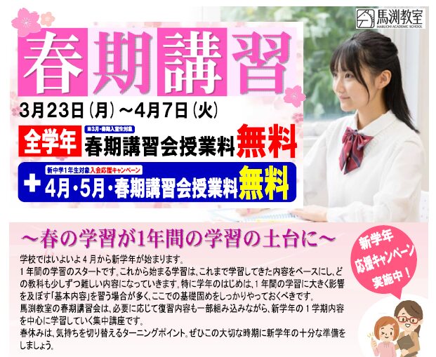 ぜひともお友達もお誘い合わせのうえ、馬渕教室の冬期講習会にご参加ください!
