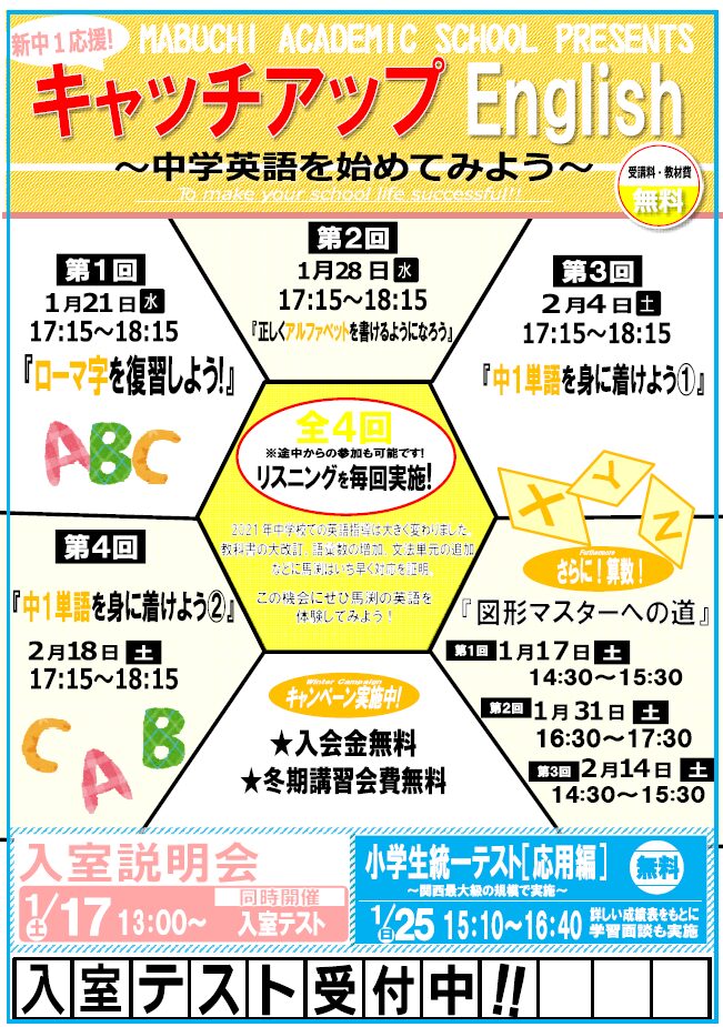 | 対象 | 新小4~新中3のお子様 |