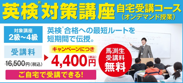 | ●詳細はこちら● ◆受 講 料 : 4,400円(税込)馬渕に入室すると受講料が無料に! ◆教 材 費 : 【2級】 2,919円(税込) 【準2級・3級】 2,809円(税込) 【4級】 2,680円 (税込) |