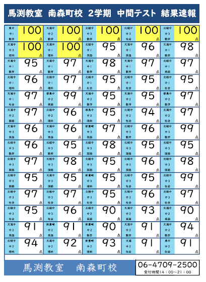 馬渕教室南森町校は定期テスト対策もバッチリ!