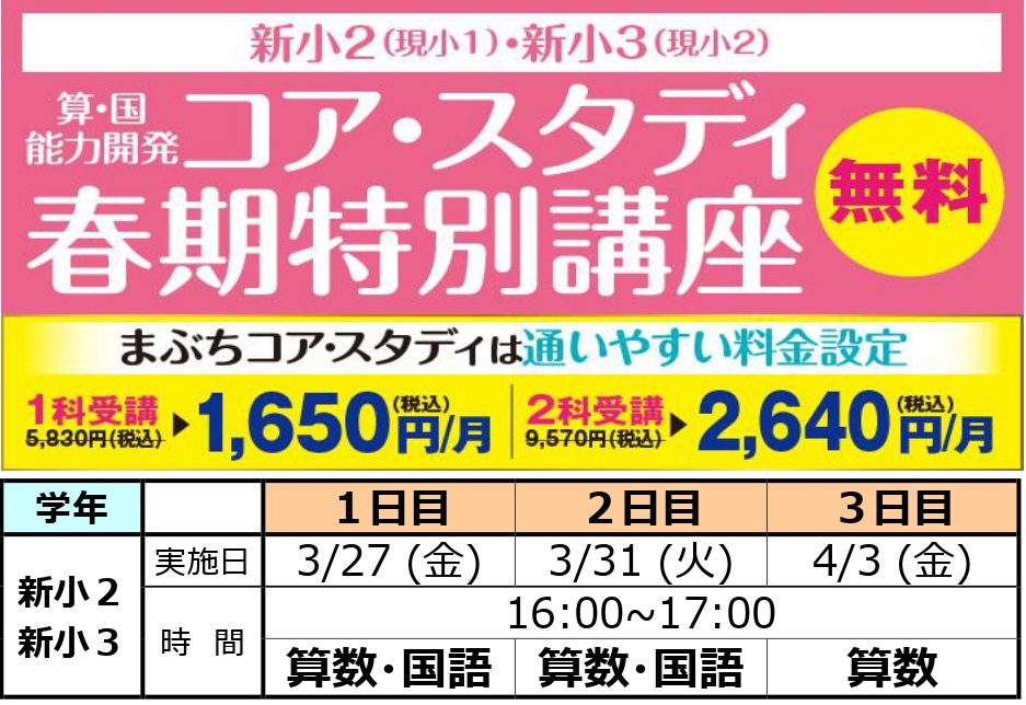 - 小2・小3算国能力開発・まぶちコア・スタディ
