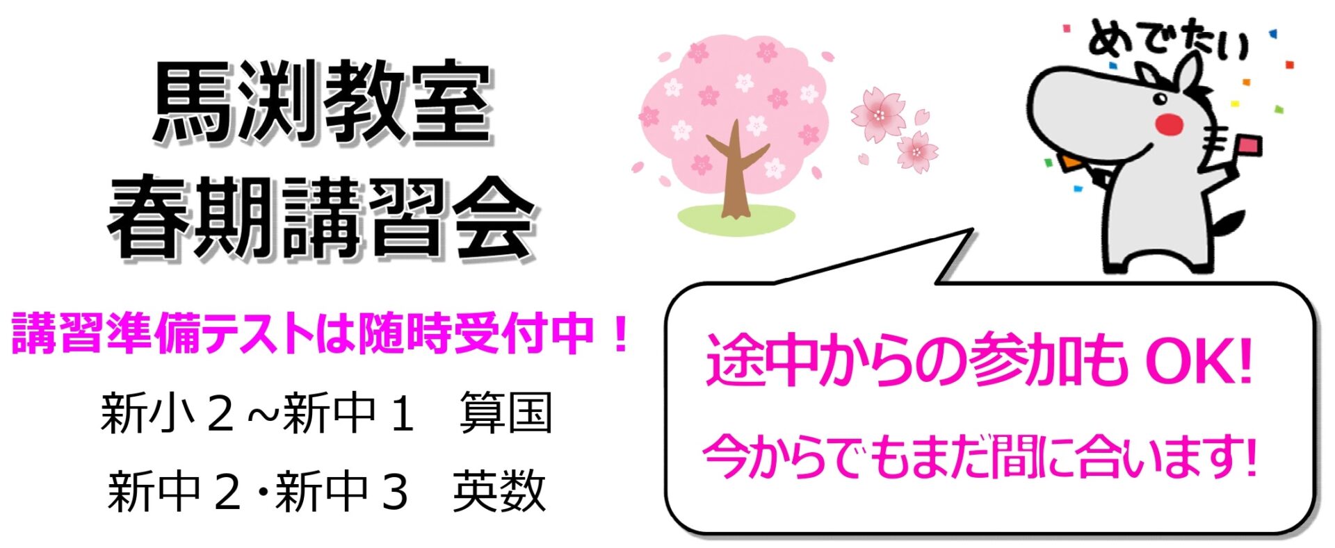 ▲学校ではいよいよ4月から新学年がスタート!特に学年のはじめは、1年間の学習に大きく影響を及ぼす「基本内容」を習う場合が多く、ここでの基礎固めをしっかりやっておくべきです。馬渕教室の春期講習会は、必要に応じて復習内容も一部組み込みながら、新学年の1学期内容を中心に学習していきます。春休みは、気持ちを切り替えるターニングポイント!ぜひこの大切な時期に新学年の十分な準備をしましょう。春期講習の詳細はこちら!▲