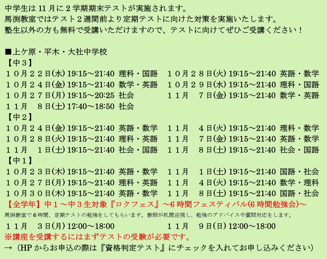 ★中学生定期テスト結果★