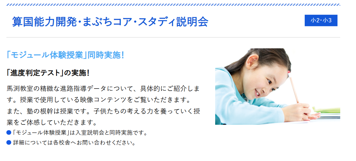 - 「モジュール体験授業」は入室説明会と同時実施です。