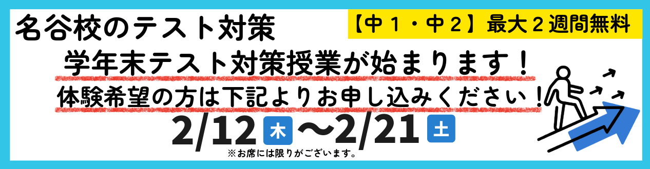 Q:定期テスト対策はありますか?A:定期テスト2週間前から、馬渕教室のカリキュラムを一旦ストップさせて、 学校の定期テストで得点するための対策授業になります。 試験範囲に応じた『授業』で結果を出します。 過去問に頼るだけの指導ではなく、単元の解説や確認テストを行います。 定期テスト対策も馬渕にお任せください!2週間無料体験もできます。 |