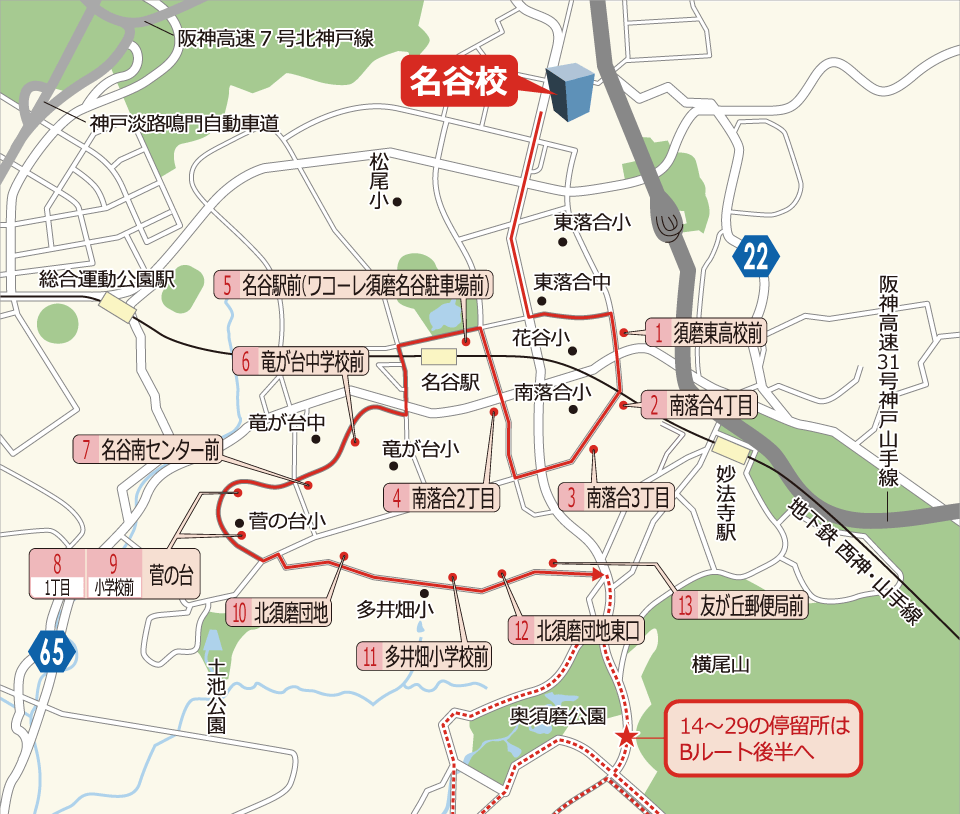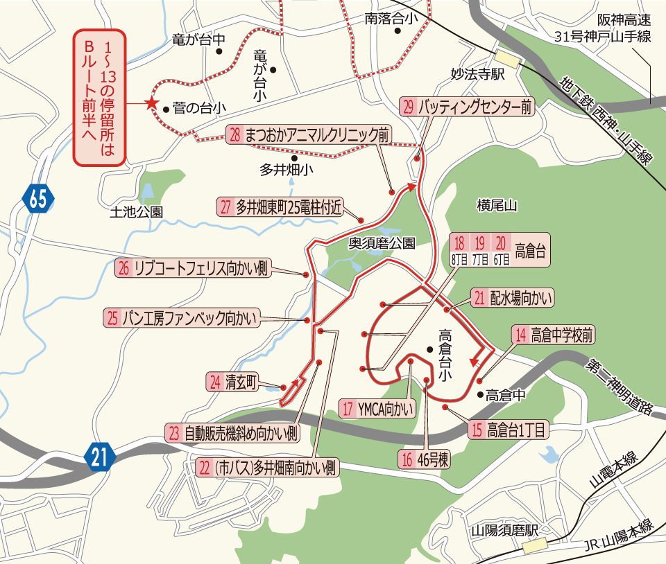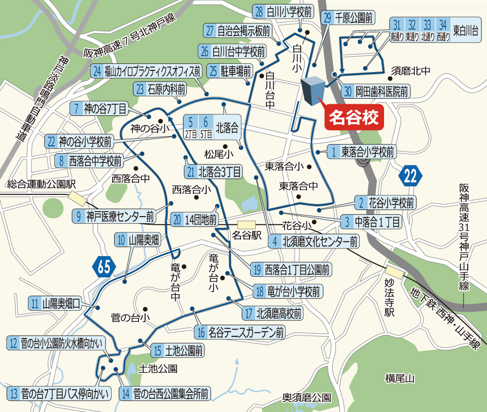 東落合、南落合、竜が台、菅の台、友が丘、高倉台、清玄町、多井畑 方面