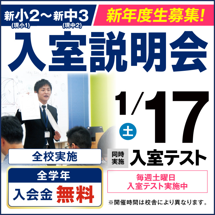 ※入室・体験授業・冬期講習の受講にはテストの受験が必要です。HP、もしくは電話(☎0798-46-2500)かLINEにてお申し込みください。