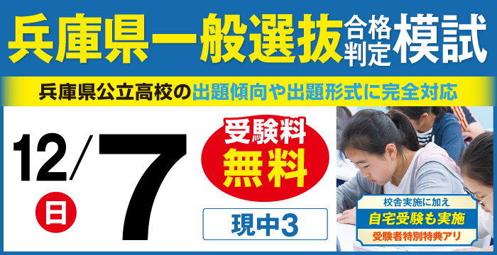 | 兵庫県公立入試は、難度が高く、深い思考力や応用力が必要になり、これに特化した授業や演習が必須となります。中3ランクアップコースは、英・数・国・理・社、5教科の徹底対策を行う、公立上位高校合格、有名私立高校合格のための特別講座です。夏までに培ってきた基礎学力に、入試問題を解くための実践力を高めます。 土曜日・日曜日を利用し、鳴尾校にて開講しております。 部活動や生徒会活動などで平日の受講が難しくても、土日実施なので受講可能です。 他塾生も受講可能です。詳細は校舎までお問い合わせください。 |