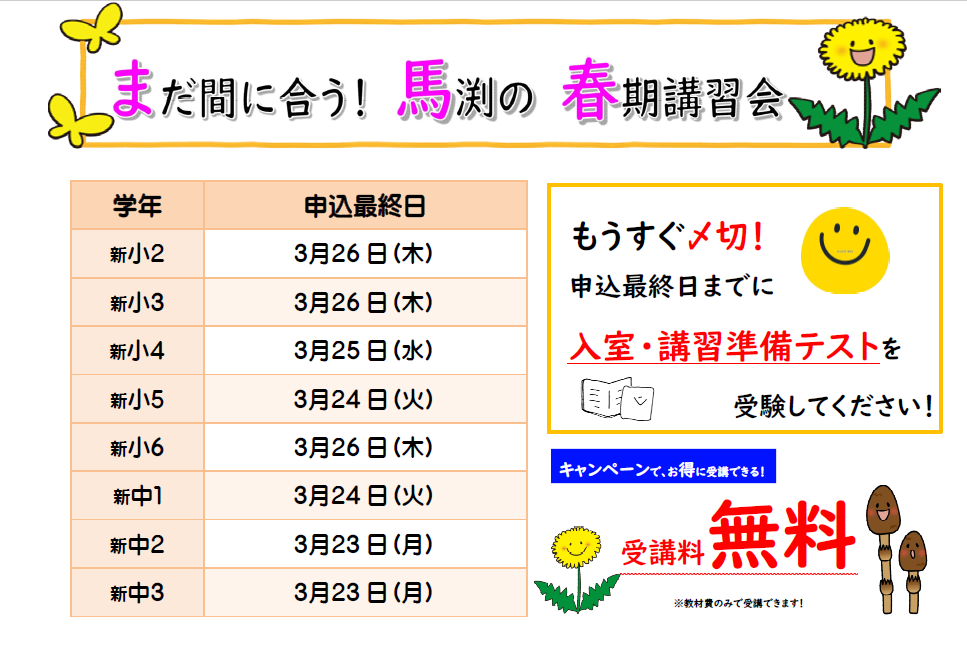 春期講習会もうすぐスタート!まだ間に合います!!