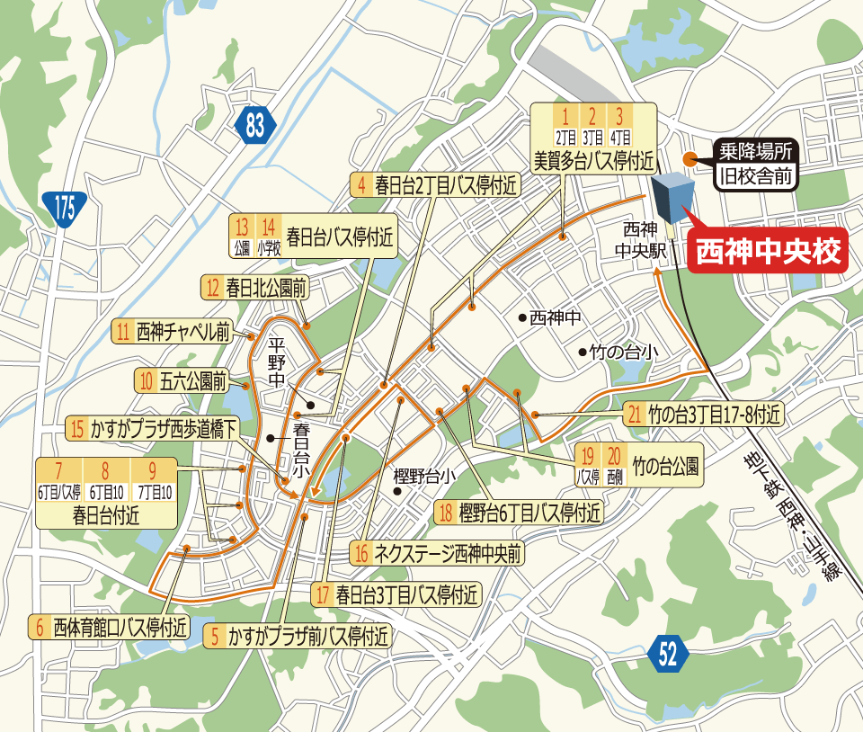 美賀多台、春日台、樫野台、竹の台 方面