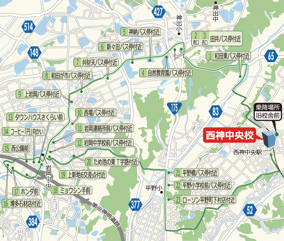 神出町、岩岡町、上新地、竜が岡、平野町 方面