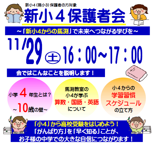 | A:馬渕教室では入室の際にテストを受験していただいています。このテストに合格された方は、塾の授業に十分についていける学力をお持ちです。つまずいた単元や分からない宿題などは随時、質問対応やまぶち欠席フォローWebにてフォローしますので、合格なさったなら安心して馬渕教室に入室してください。勉強やクラブ・習い事など目一杯頑張る君を馬渕教室は全力で応援します。 |