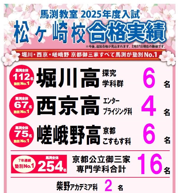 堀川・西京・嵯峨野・桃山・山城・洛北・紫野を目指すなら馬渕教室へ!