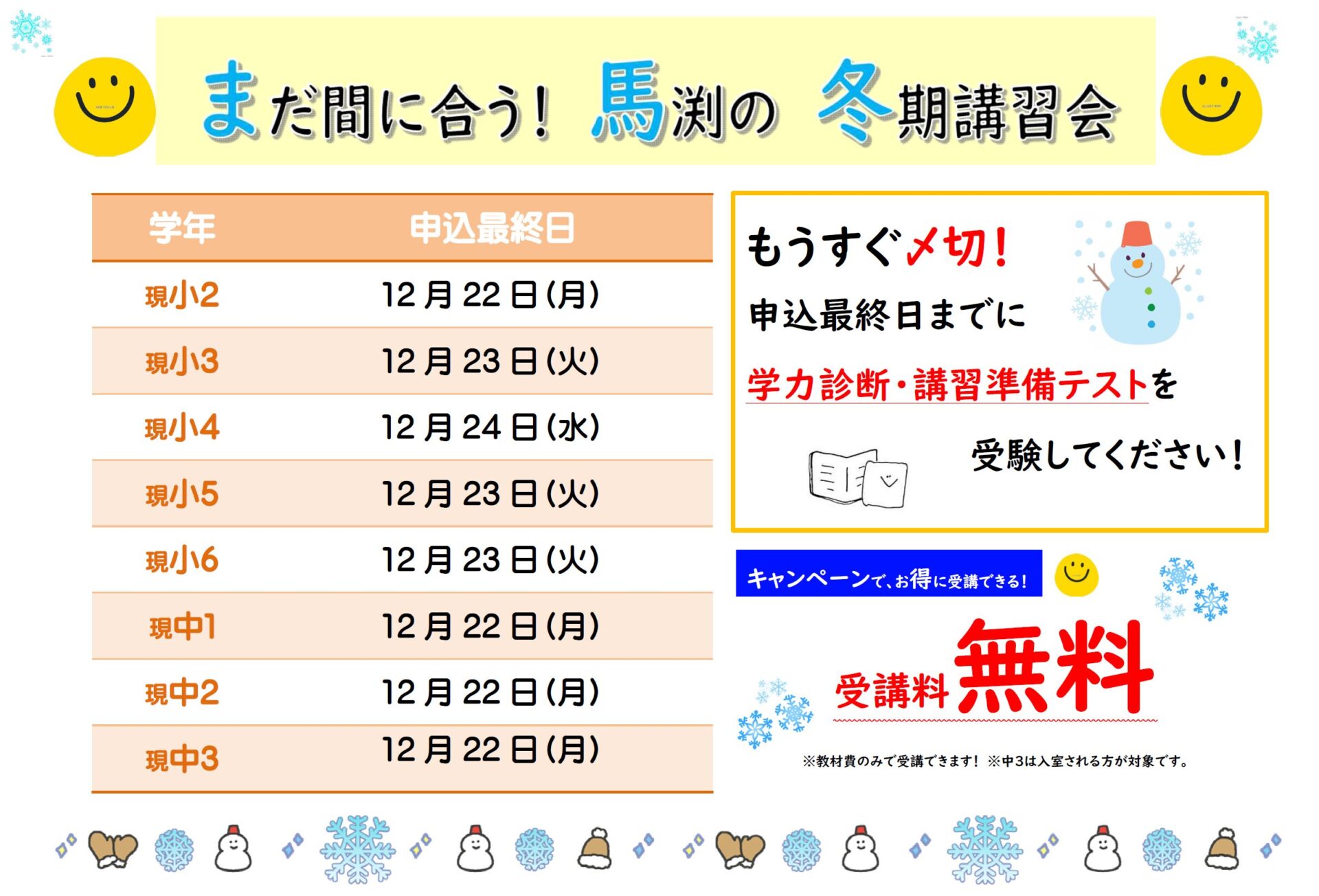 | 対象学年 | 小学2年生〜中学3年生 |