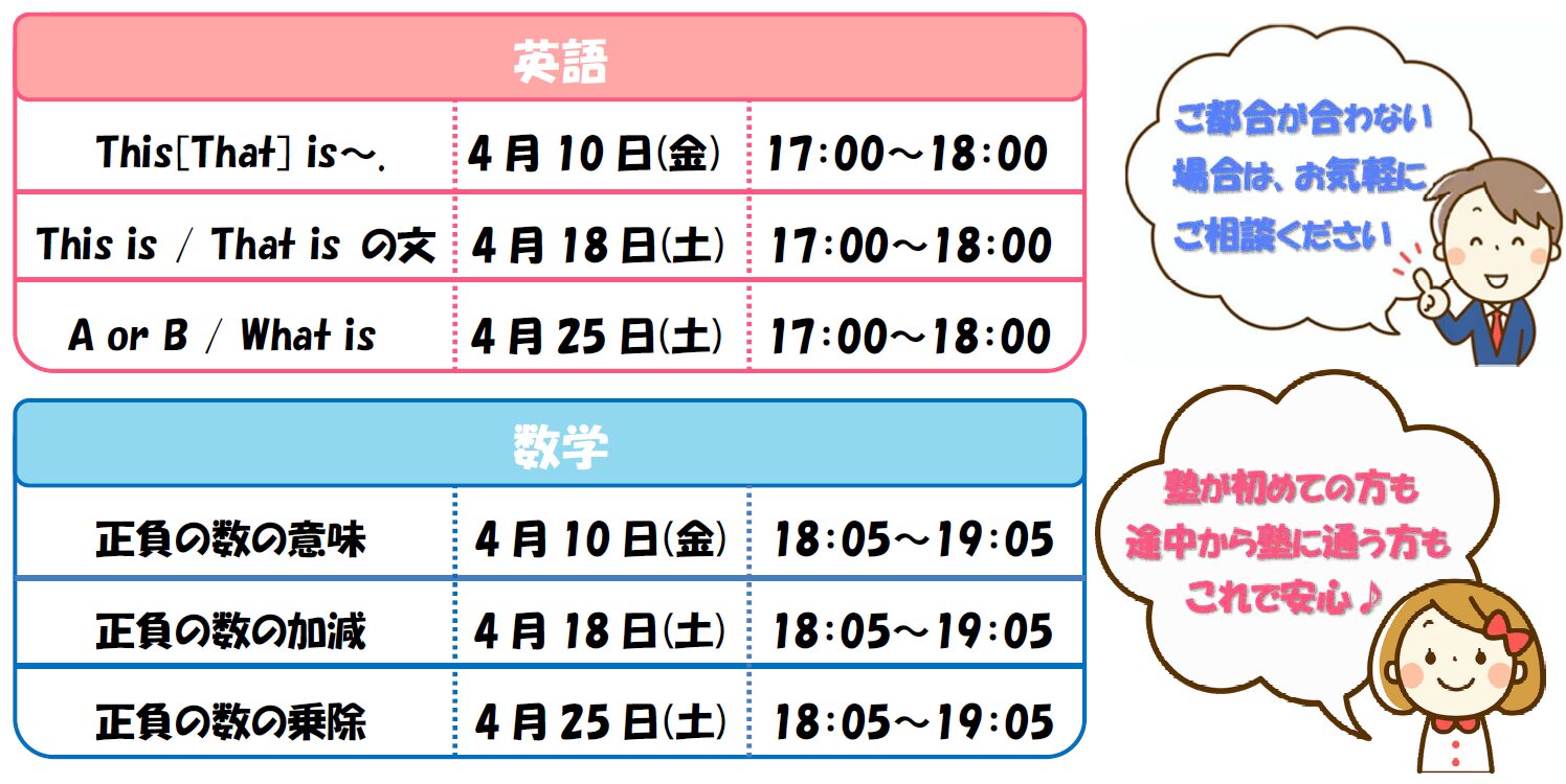 A:それまでの学習進捗具合によって、しっかりフォローします。無料体験授業・授業見学・進路懇談など、転塾をスムーズに行っていただけるよう転塾応援制度を設けています。どうぞご安心ください。