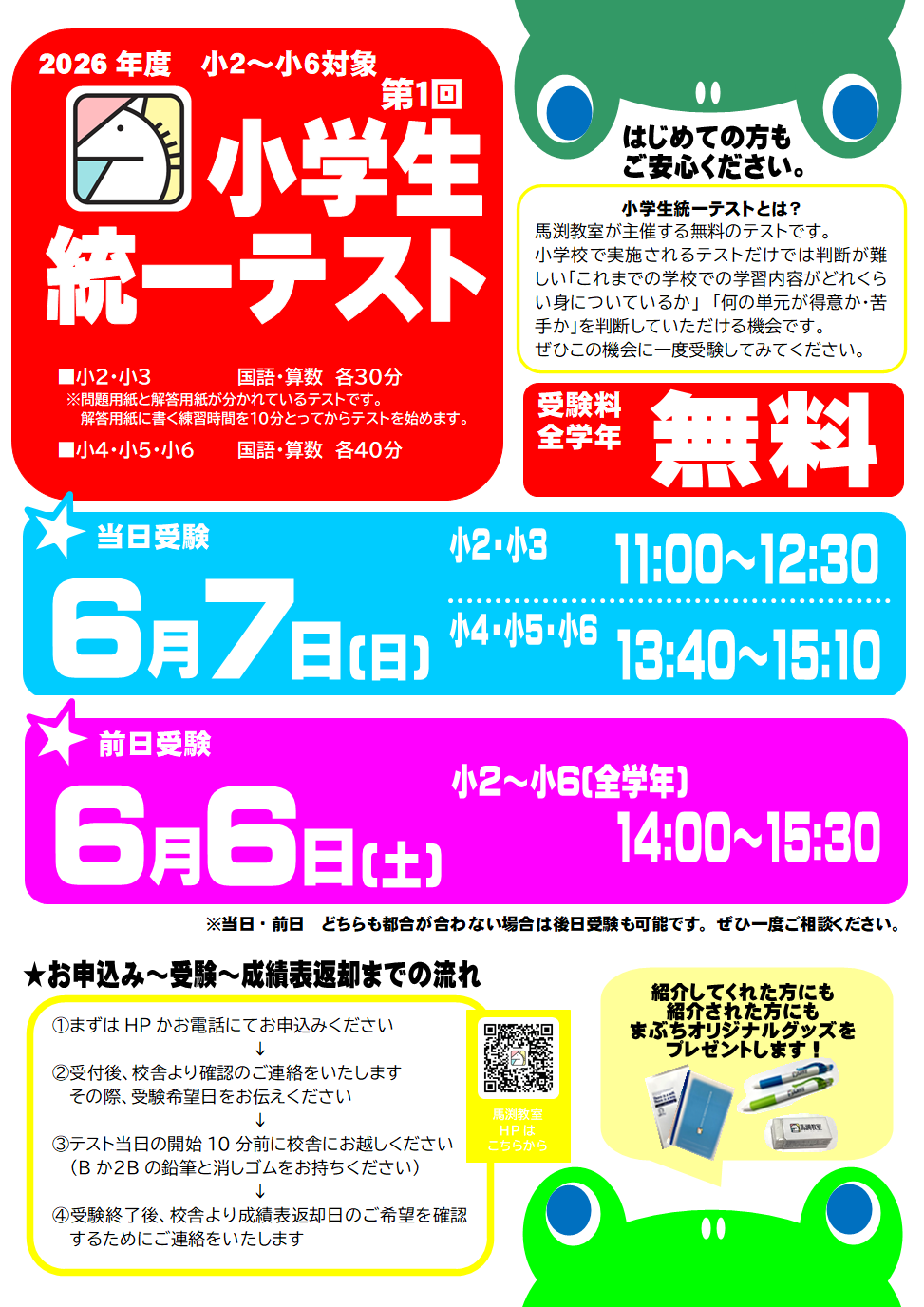 馬渕教室へ入室を希望される方は、「入室テスト」を受験して入室資格を取得してください。受験には事前のお申し込みが必要です。校舎までお電話いただくか校舎窓口にてお申し込みください。