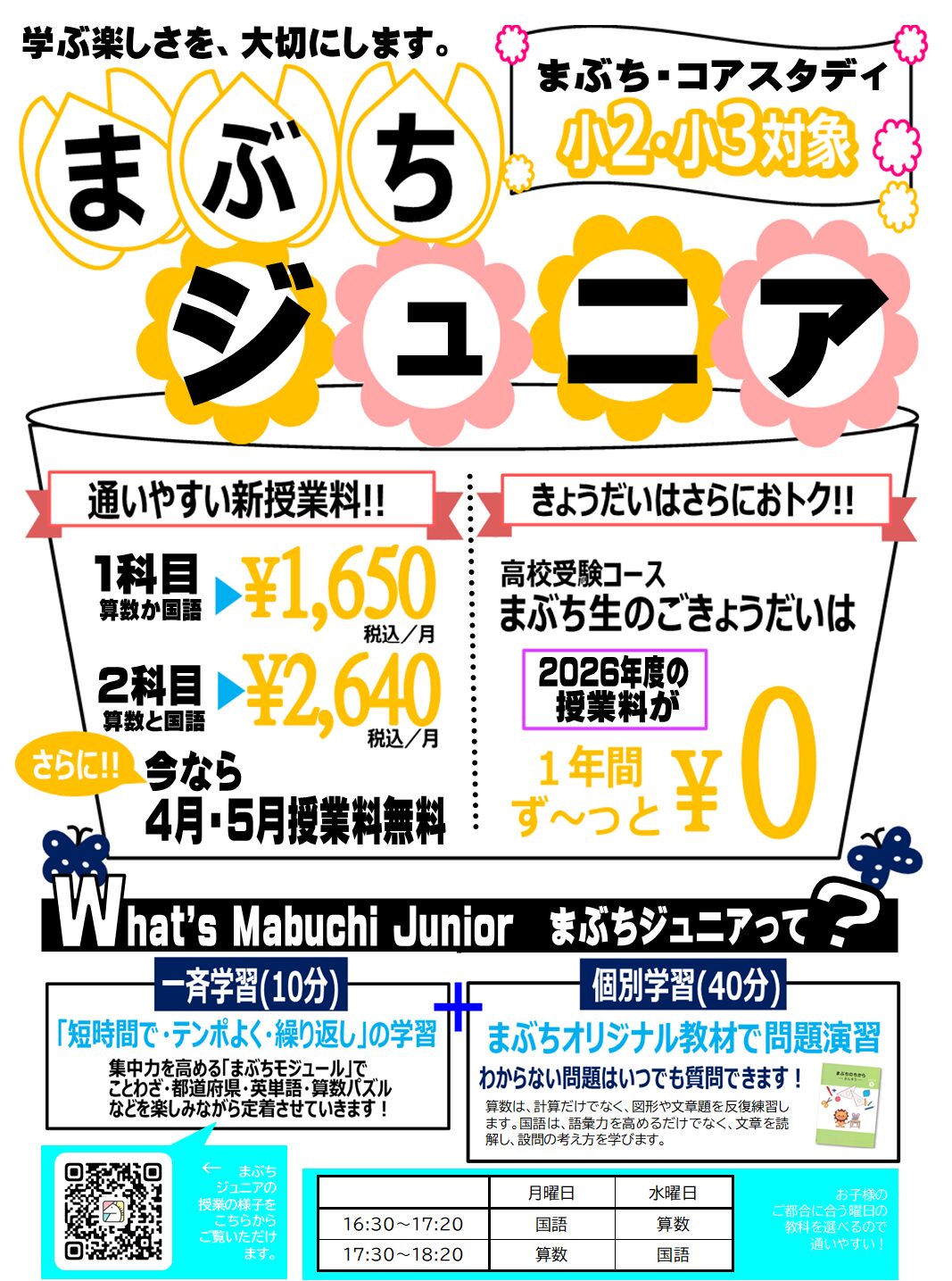 小2・小3のごきょうだいの方の授業料は小4になるまでずーっと無料です。