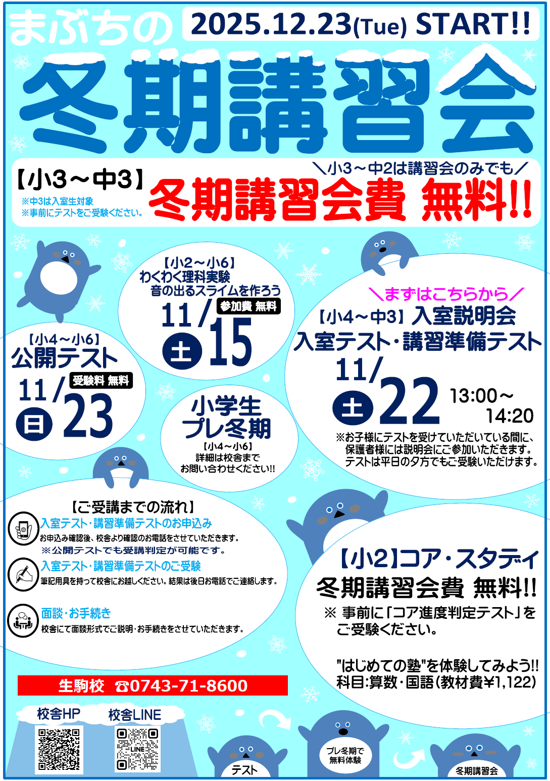 - 詳細については校舎へお問い合わせください。