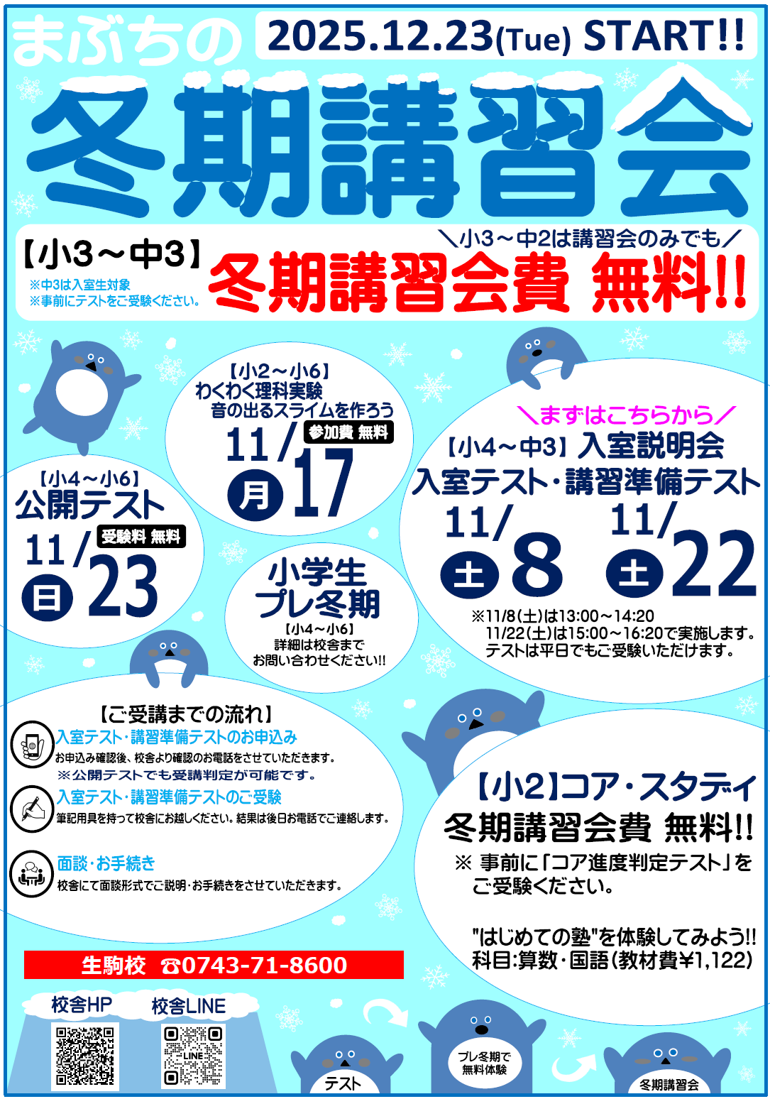 - 詳細については校舎へお問い合わせください。