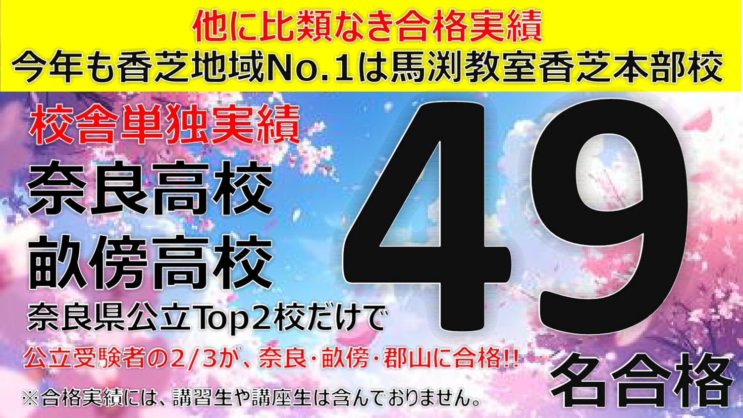 受験 高校入試 公立 私立 合格 実績 最難関 成績 内申 点数 定期テスト テスト対策 講習 春期講習 夏期講習 冬期講習 ナンバー1 No.1 奈良 畝傍 郡山 転塾 応援 一条 高田 橿原 無料 半額 還元