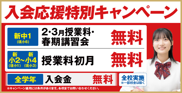 | ●小4~中3● ✐入室説明会のご案内✐ □2月14日(土) 13:00~14:20 ※入室テストを同時実施。 ※説明会以外の日程での個別でのご説明も可能です。 ✐入室テスト及び講習準備テストのご案内✐ □毎週土曜日 15:00~16:15 ※ 平日の受験も可能です。 □ 実施教科 新小4~新中1…国語・算数 新中2~新中3…英語・数学 □ 受験料 無料 お電話かホームページよりお申込みください。 |
