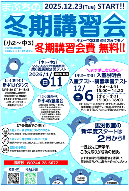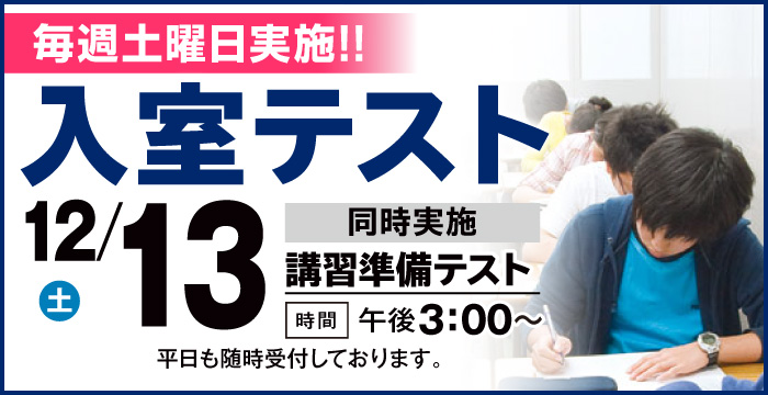 馬渕教室へ入室を希望される方は、「入室テスト」を受験して入室資格を取得してください。受験には事前のお申し込みが必要です。校舎までお電話いただくか校舎窓口にてお申し込みください。