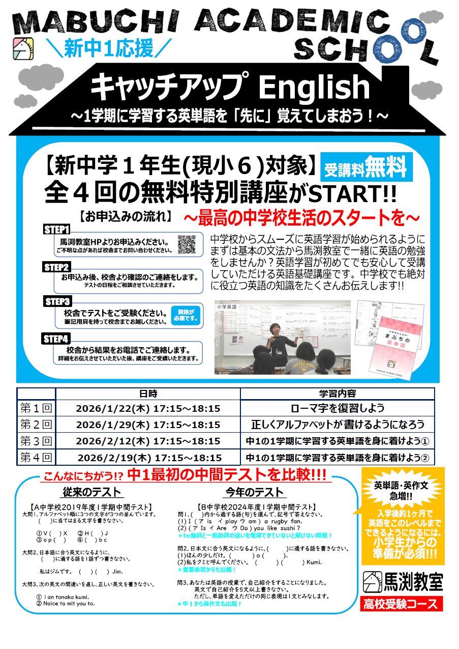 定期テスト対策も馬渕にお任せください!2週間無料体験もできます。