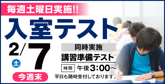 馬渕教室へ入室を希望される方は、「入室テスト」を受験して入室資格を取得してください。受験には事前のお申し込みが必要です。校舎までお電話いただくか校舎窓口にてお申し込みください。