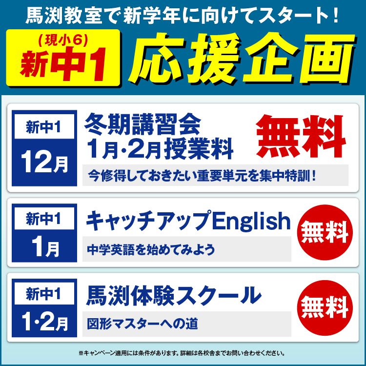 | 奈良高・畝傍高・郡山高上位合格、私立難関高合格を目指す君に。馬渕教室の力を結集したハイレベル講座。他塾との併用可能です。日曜・祝日だけの通塾で奈良高校を目指してみませんか? 学年:中3 日時:2026年1月11日(日)、18日(日) 教科:英・数・国・理・社 費用:体験無料!! ※事前にテストの受験が必要になります。 |