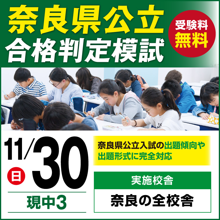 | 奈良高・畝傍高・郡山高上位合格、私立難関高合格を目指す君に。馬渕教室の力を結集したハイレベル講座。他塾との併用可能です。日曜・祝日だけの通塾で奈良高校を目指してみませんか? 学年:中3 日時:次回は期末テスト後の12月7日(日) 教科:英・数・国・理・社 費用:体験無料!! ※事前にテストの受験が必要になります。 |