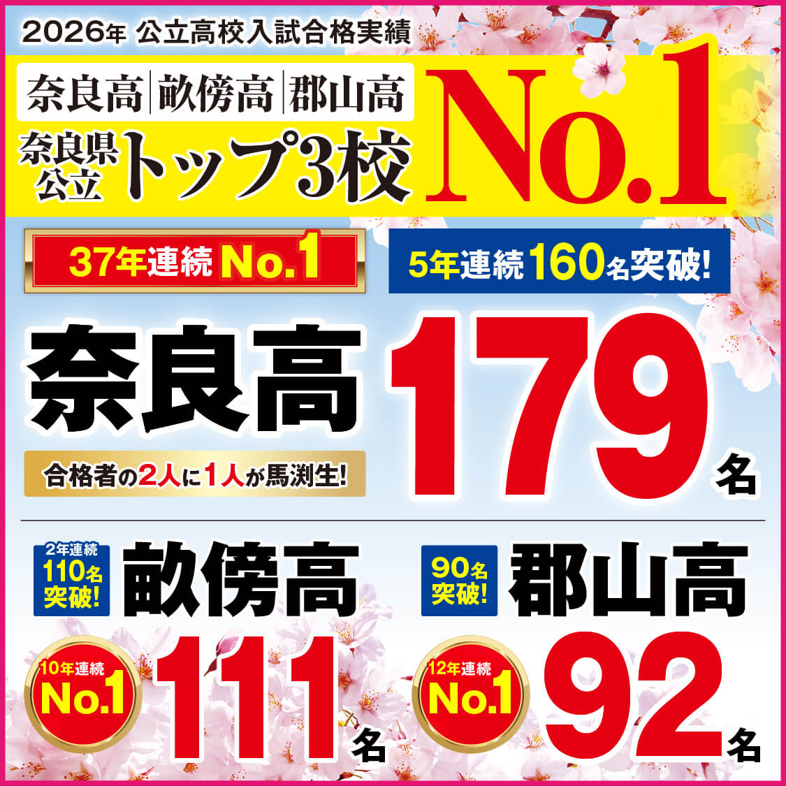 | 定期テスト結果の一部を抜粋してお伝えします。 🌼王寺北…中1馬渕平均450点以上!全員400点以上!! 🌼王寺南…中1学年1位は馬渕生!! 🌼斑鳩南…中1学年1位・2位は馬渕生!! 🌼広陵 …中1馬渕生全員450点以上!! 🌼王寺北…中2社会 学年1位は馬渕生! 🌼王寺南…中2数学 学年1位は馬渕生! 🌼河合②…中2馬渕生平均416点! 🌼安堵 …中2馬渕生平均420点! 🌼三郷 …中2馬渕生平均430点! 🌼河合①…中3馬渕生全員400点以上! 🌼河合②…中3で450点以上の3分の2は馬渕生! 🌼平群 …中3馬渕生全員450点以上! |