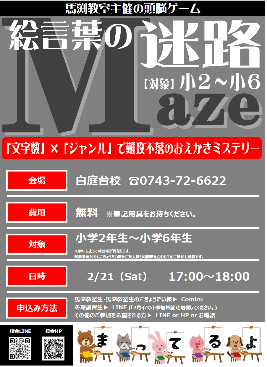 2/21(土)に頭脳ゲーム「絵言葉の迷路」を実施します!