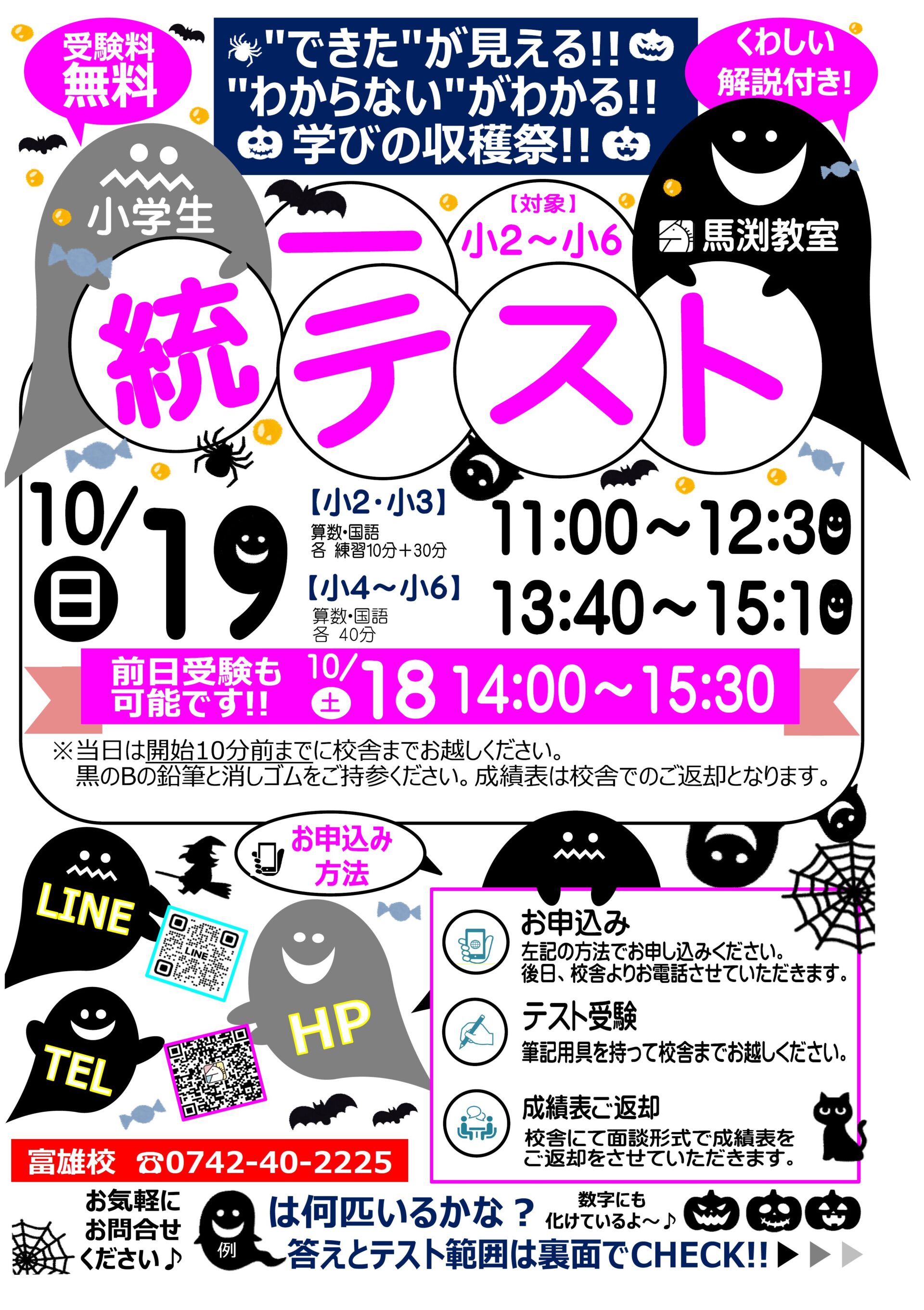 ●新小4~新中3● ✐入室テスト・講習準備テストのご案内✐ □毎週土曜日 15:00~16:20 ※ テストのみであれば、平日の受験も可能です。 □ 実施教科 新小4~新中1…国語・算数 新中2・新中3…英語・数学 □ 受験料 無料 お電話かホームページよりお申込みください。 |