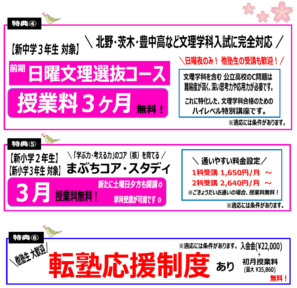 - 詳細については校舎へお問い合わせください。