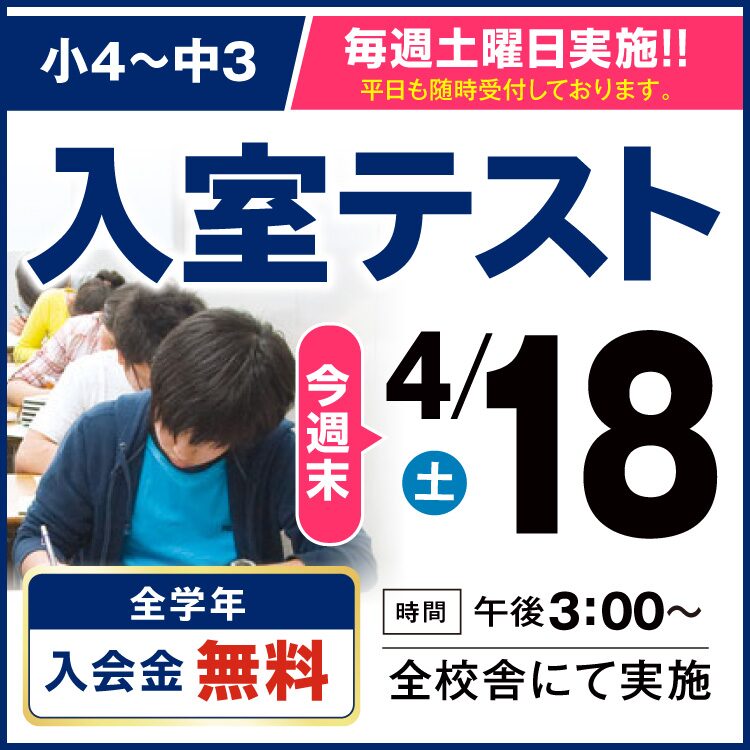 馬渕教室へ入室を希望される方は、「入室テスト」を受験して入室資格を取得してください。受験には事前のお申し込みが必要です。校舎までお電話いただくか校舎窓口にてお申し込みください。