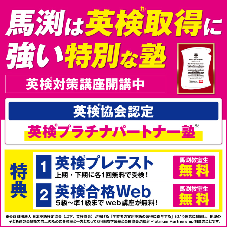 ■□馬渕教室は日本英語検定協会とプラチナパートナー契約を締結いたしました□■