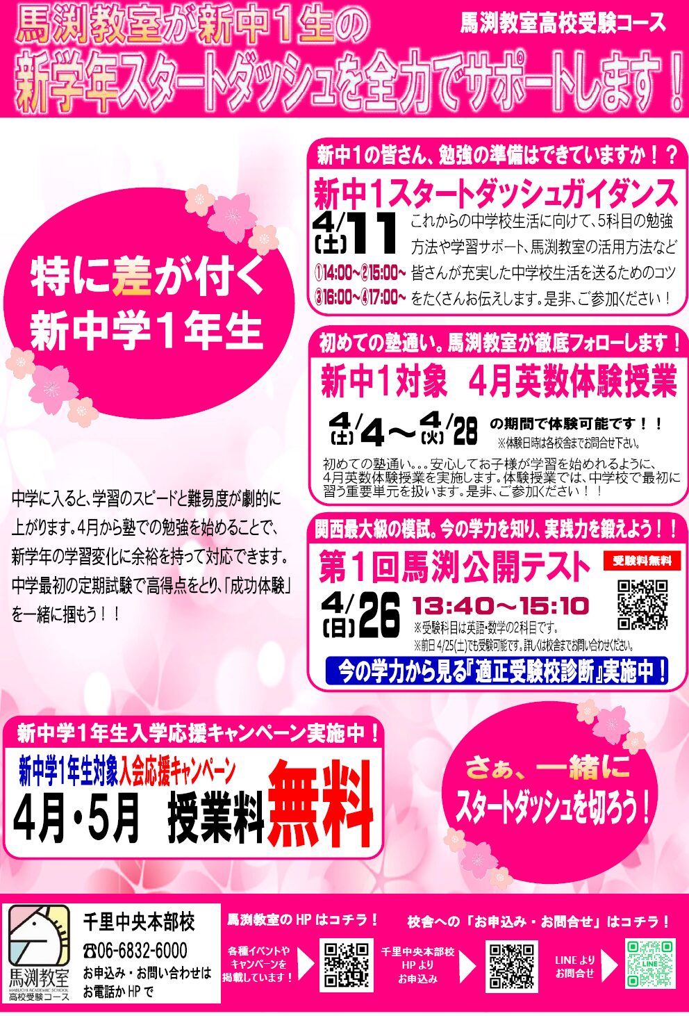 | 新中1(現小6) | 入会金無料 春期講習・4月・5月授業料無料 転塾応援制度 |
