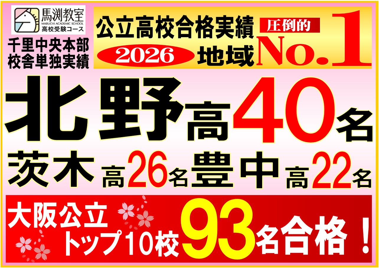 千里中央地域、今年も北野・茨木・豊中合格者数圧倒的No.1