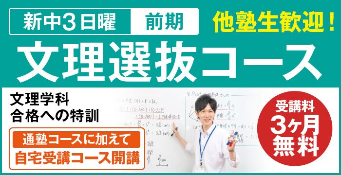 | 北野・茨木・豊中など、公立文理学科高校の受験を目指すための特別コースです。 クラブ活動や習い事、他の塾とも併用可能なように日曜日の夜に開講しています。 文理学科受験に必要な知識や重要単元を中心に、実践力を養成します。 ぜひこの機会に、大阪府文理学科高校合格者No.1の馬渕教室だからこそ出来る「最高の授業」をぜひ受講してください。 ※詳しくは校舎までお問い合わせください。 |
