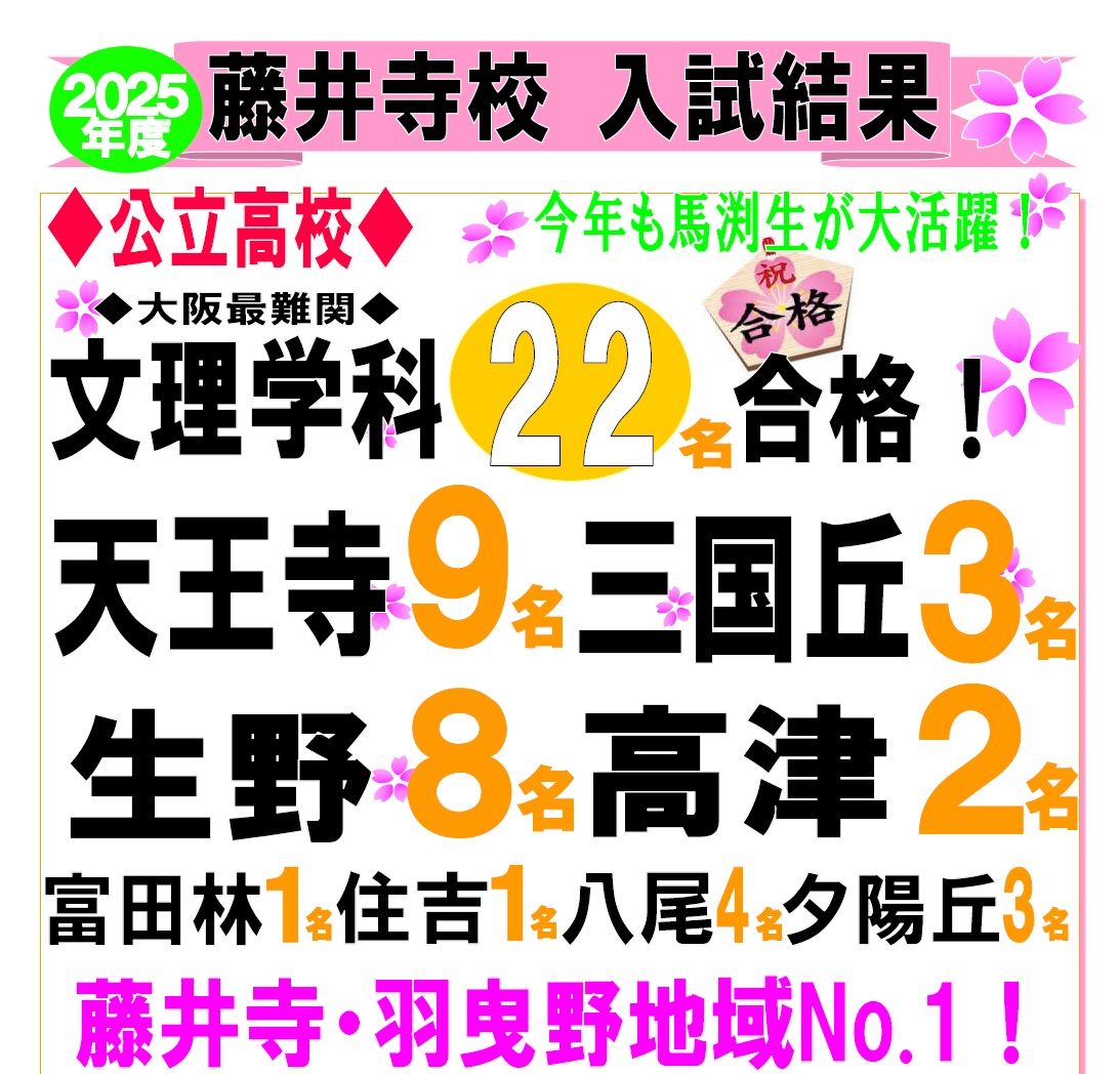 🌸藤井寺校 合格実績🌸