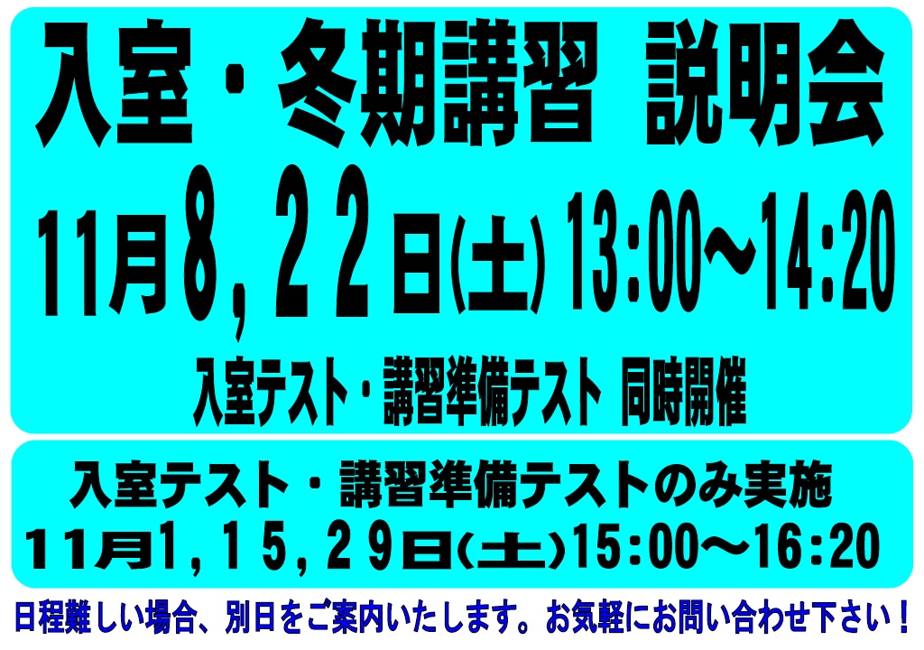 11月・12月の通常授業から入室する方も冬期講習会キャンペーンが適用されます!