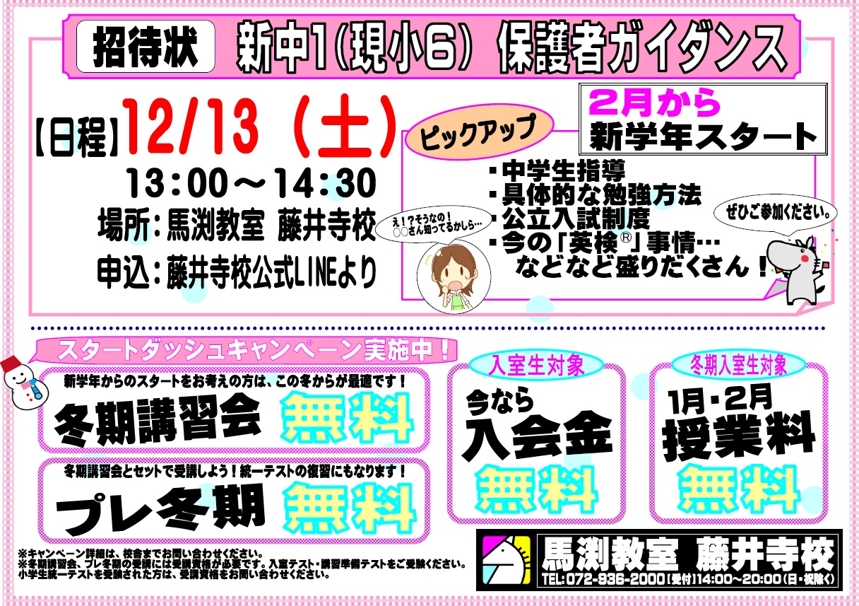 馬渕教室が気になっている新中1保護者の方はお気軽にご参加ください!